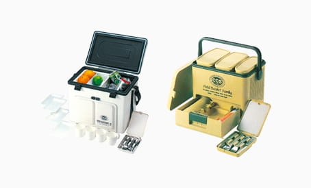 世界的なパンデミックが発生し、ワクチン輸送のコールドチェーン構築に貢献するため開発された運搬庫。精密な温度管理が可能で、コンパクトで可搬性のある製品は多くのワクチン接種の現場で活用され、危機的状況への対応に貢献いたしました。部品供給や増産体制など地場の協力あって対応が実現したものであり、これまで専門分野の活躍が主であったSC技術が大きく注目されることとなりました。
