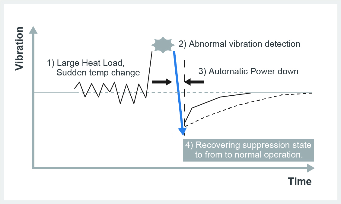 “Vibration detector” on SC-UG08S automatically reduces the output instruction to suppress the abnormal vibration.